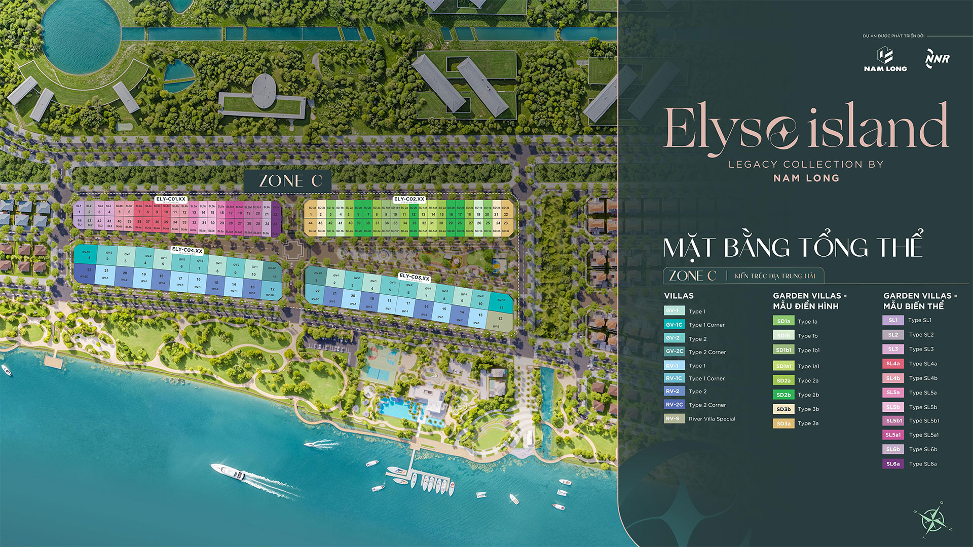 Phân khu Zone C Elyse Island – “Dòng biệt thự ven sông” sang trọng gồm 132 căn, trong đó có: