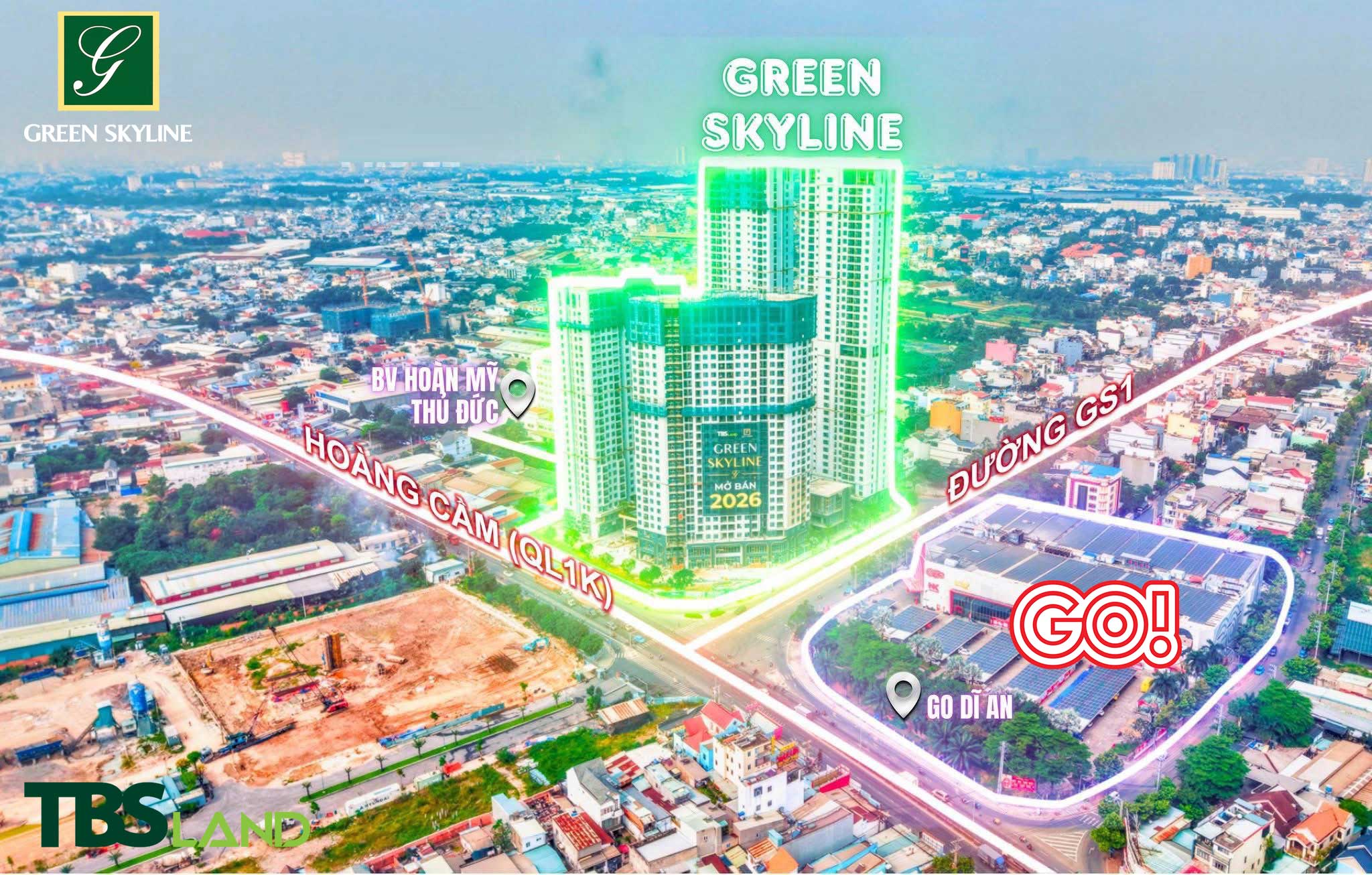 Green Skyline là dự án căn hộ và shophouse thương mại quy mô hiện đại do TBS Land làm chủ đầu tư tọa lạc tại ngã ba Quốc lộ 1K & đường GS1, phường Đông Hòa, TP.HCM. Dự án Green Skyline có quy mô 1,32 ha, gồm 4 tòa tháp cao từ 28 – 40 tầng, cung cấp khoảng 1.296 căn hộ và các shophouse 3 tầng nằm trong khối đế bốn toà tháp. Với mật độ xây dựng khoảng 36%, Green Skyline được định hướng trở thành khu phức hợp xanh, tiện ích đồng bộ tại cửa ngõ TP.HCM.