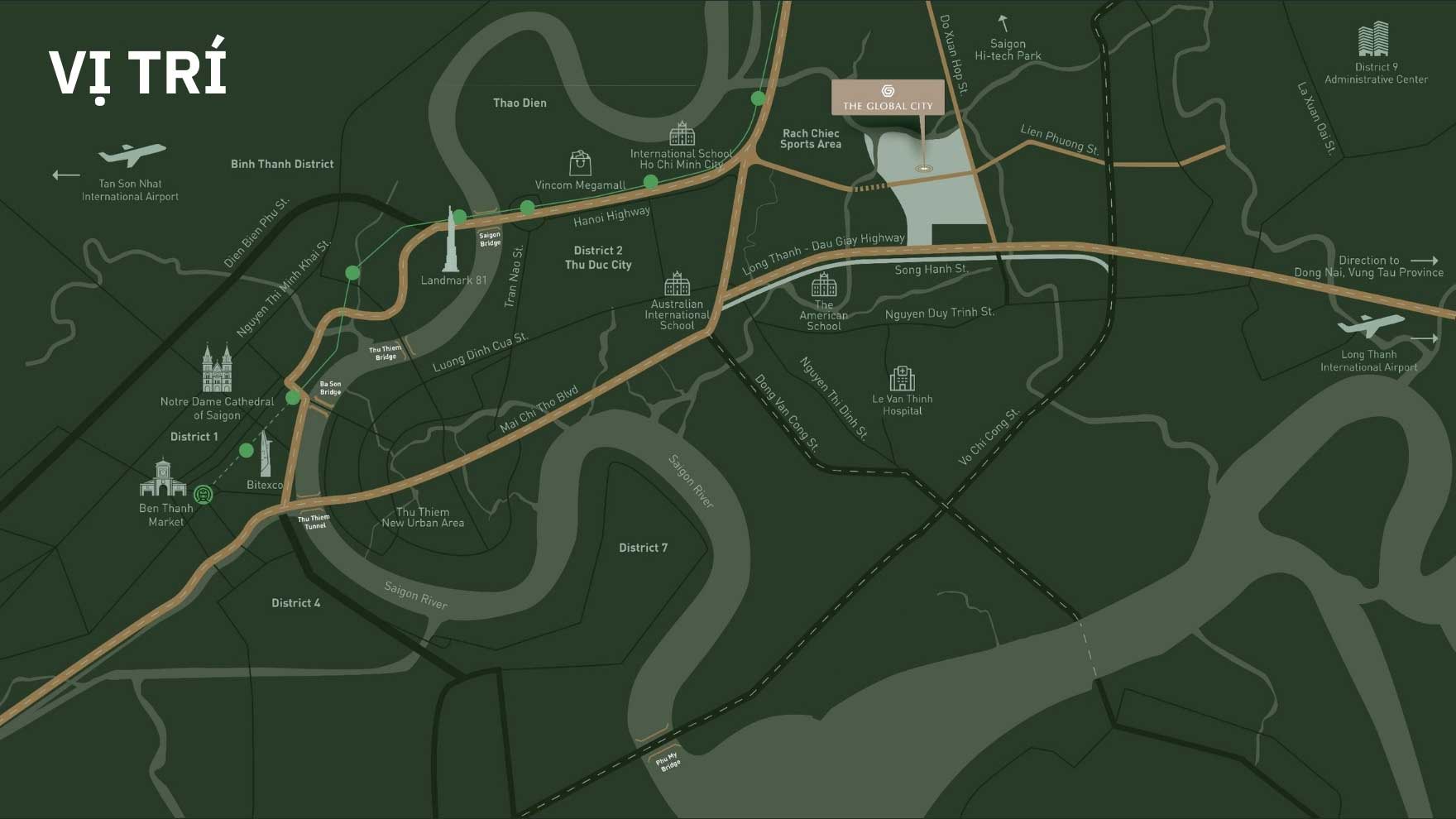 Với quy mô 117,4ha tọa lạc tại vị trí đắc địa thuộc phường An Phú, quận 2 (cũ), TP.Thủ Đức, The Global City đặt tầm nhìn trở thành một khu đô thị biểu tượng, một trung tâm mới của TP. HCM, quy tụ đa dạng tiện ích vui chơi – giải trí – mua sắm, kết hợp với diện tích nhà ở bao gồm các căn hộ cao và thấp tầng, biệt thự nằm đan xen giữa các khu trường học, y tế và hành chính, trung tâm thương mại và nhiều tiện nghi khác để tạo nên một khu đô thị phức hợp bền vững.