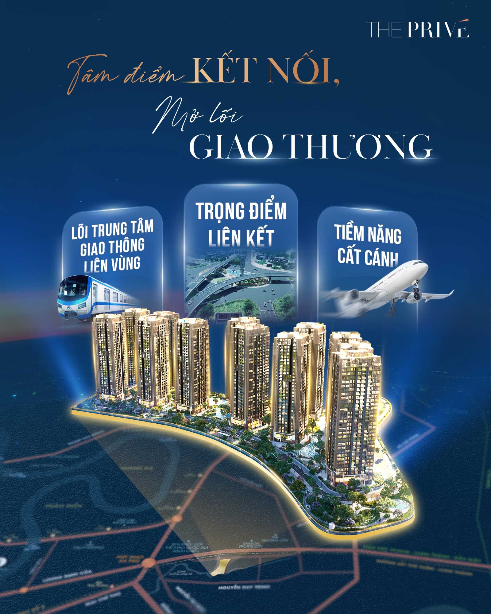 Nhà nước tập trung đầu tư vốn vào phát triển và mở rộng các tuyến đường trọng điểm xung quanh dự án The Privé tại điểm kết nối khu vực quận 2 và quận 9, như Tuyến Metro 1, đường Liên Phường, đường Đỗ Xuân Hợp, cao tốc TP.HCM – Long Thành-Dầu Giây, đường Song Hành Cao tốc và Vòng xoay An Phú. Chính nhờ vào các công trình giao thông này, căn hộ The Privé không chỉ là một dự án bất động sản mà còn là một nút giao kết nối kinh tế, góp phần vào sự phát triển chung của khu vực, đặc biệt là quận 2 (cũ). Dự án là khoản đầu tư hấp dẫn và ổn định cho các nhà đầu tư nhờ giá trị tăng trưởng ổn định