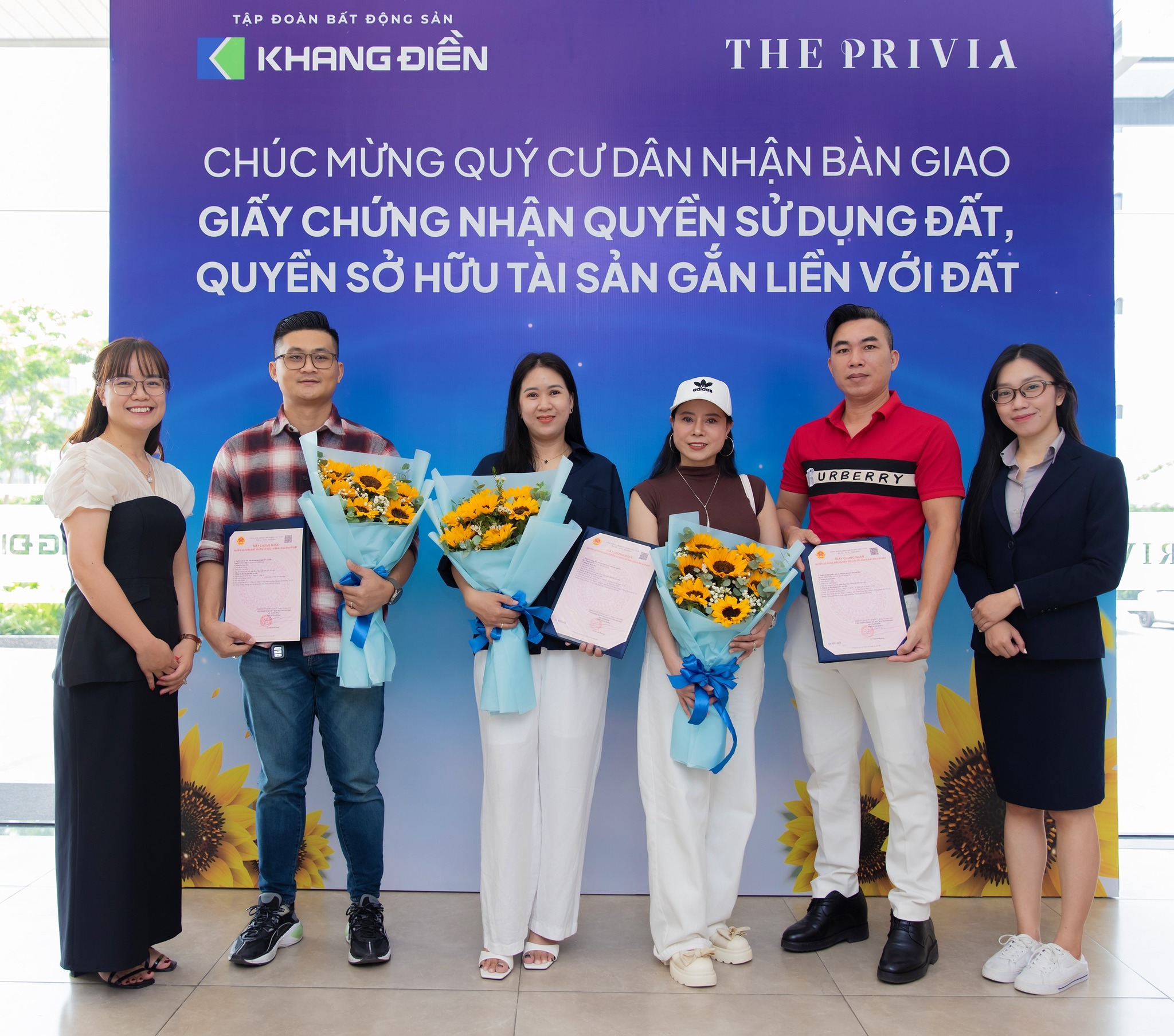 Sáng ngày 08/03/2025, Công ty TNHH MTV Đầu tư Kinh doanh nhà Khang Phúc, thành viên của Tập đoàn Khang Điền, đã tổ chức lễ bàn giao Giấy chứng nhận quyền sử dụng đất, quyền sở hữu tài sản gắn liền với đất (Sổ hồng) đợt đầu tiên cho cư dân tại Dự án THE PRIVIA, phường An Lạc, quận Bình Tân, Thành phố Hồ Chí Minh. Dự kiến các đợt trao sổ tiếp theo sẽ được tiến hành nhanh chóng cho tất cả các hộ gia đình.